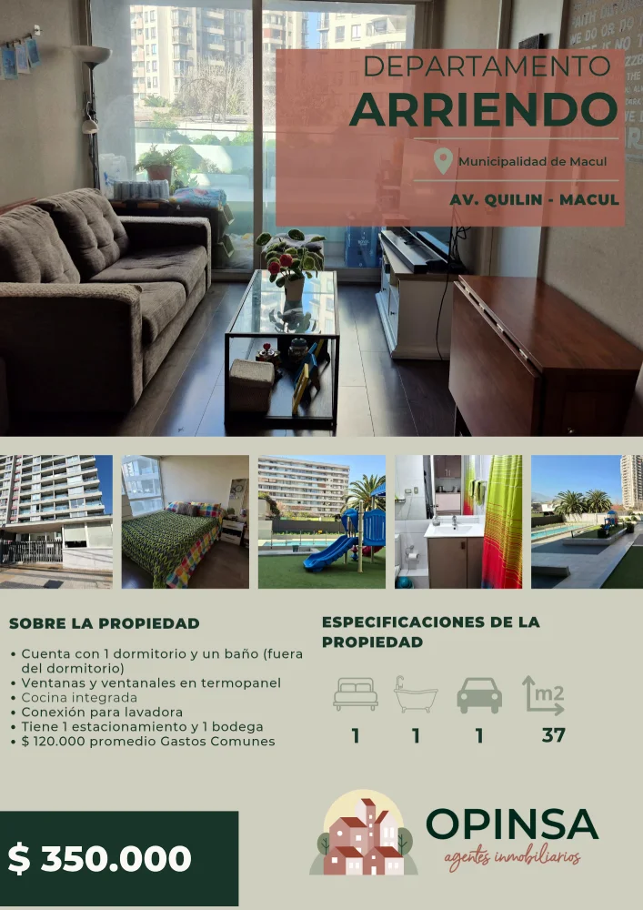 Ubicado en el sector de Avenida Quilín, este moderno departamento combina diseño funcional, comodidad y excelente conectividad con el sector oriente de Santiago.